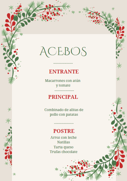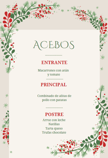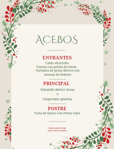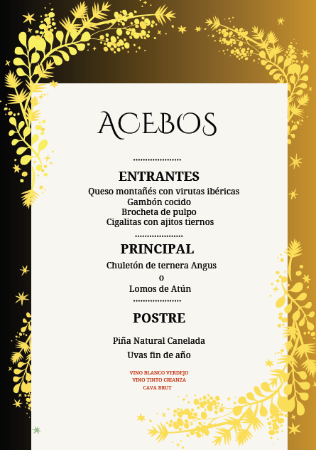 Menú cena de Nochevieja